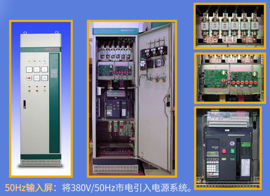 船舶用電設(shè)備要求供電電壓為450V/60Hz,電網(wǎng)供電電壓為380V/50Hz,兩者頻率、電壓不相符,直接接入會(huì)因頻率和電壓的不同,或損壞用電設(shè)備,或用電設(shè)備不能工作,嚴(yán)重或引起火災(zāi)。